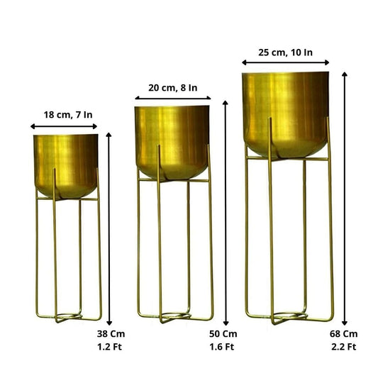 Mid-Century Golden Metal Planters wit...