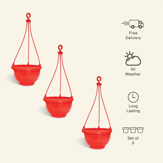 9-Inch Red Color Hanging Pots- Set of...