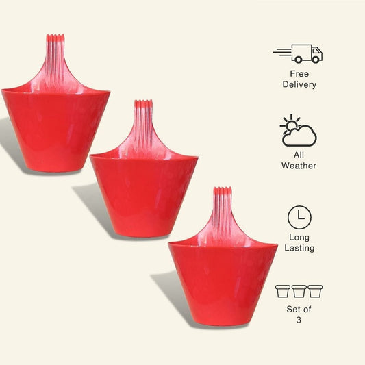 9-Inch Red Color Hanging Pots- Set of...