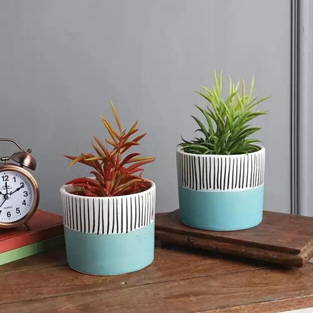 Artfully created and intricately designed, these beautiful tabletop ceramic planters are the perfect indoor addition. Be it your home, office or corner space, these planters tastefully create the essence of life around us. Pair these gorgeous tabletop planters with succulents, cacti, Air plants, Syngoniums, Pothos or other plants of your choice.