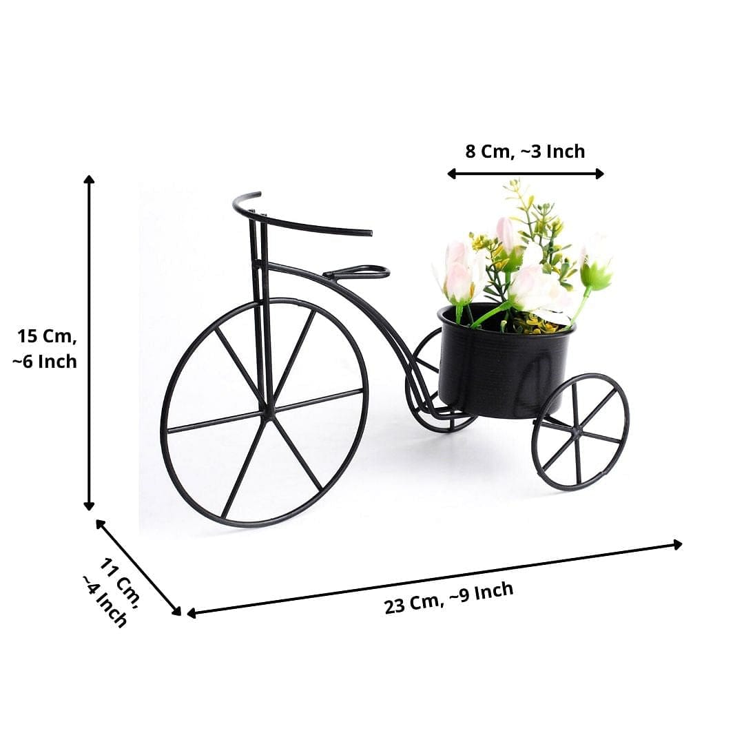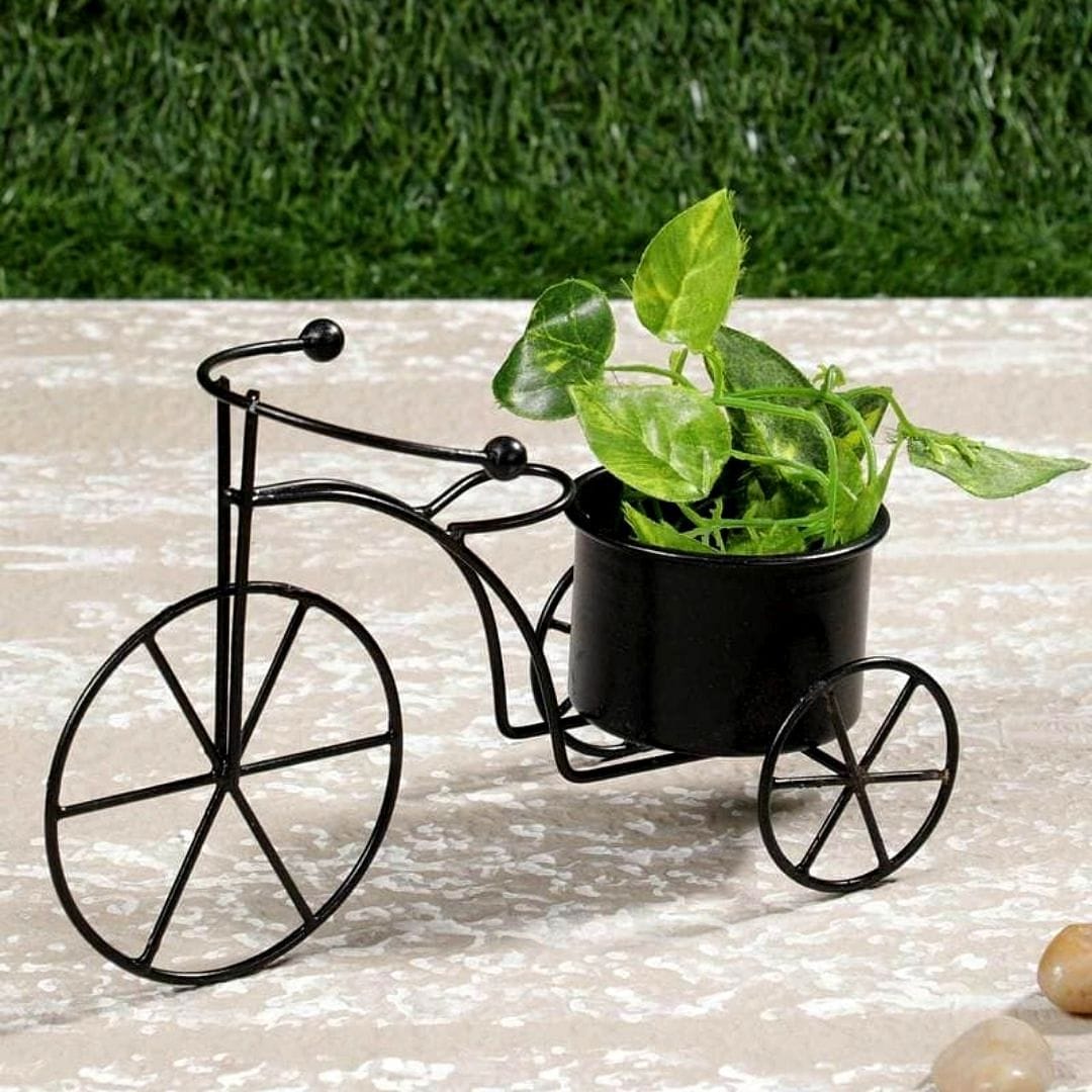 Elevate your interior decor with this elegant planter stand with its unique and chic tricycle metal support. The set comes attached with one metal pot holder to fit pots of sizes between 2-3 Inches (max diameter 8cm) in a polished metal black finish. Pot your pretty succulents in this planter and decorate your mantelpieces for the aesthetic feels. The planter stand is perfect for decorating your table-top with a beautiful plant & pot stand.